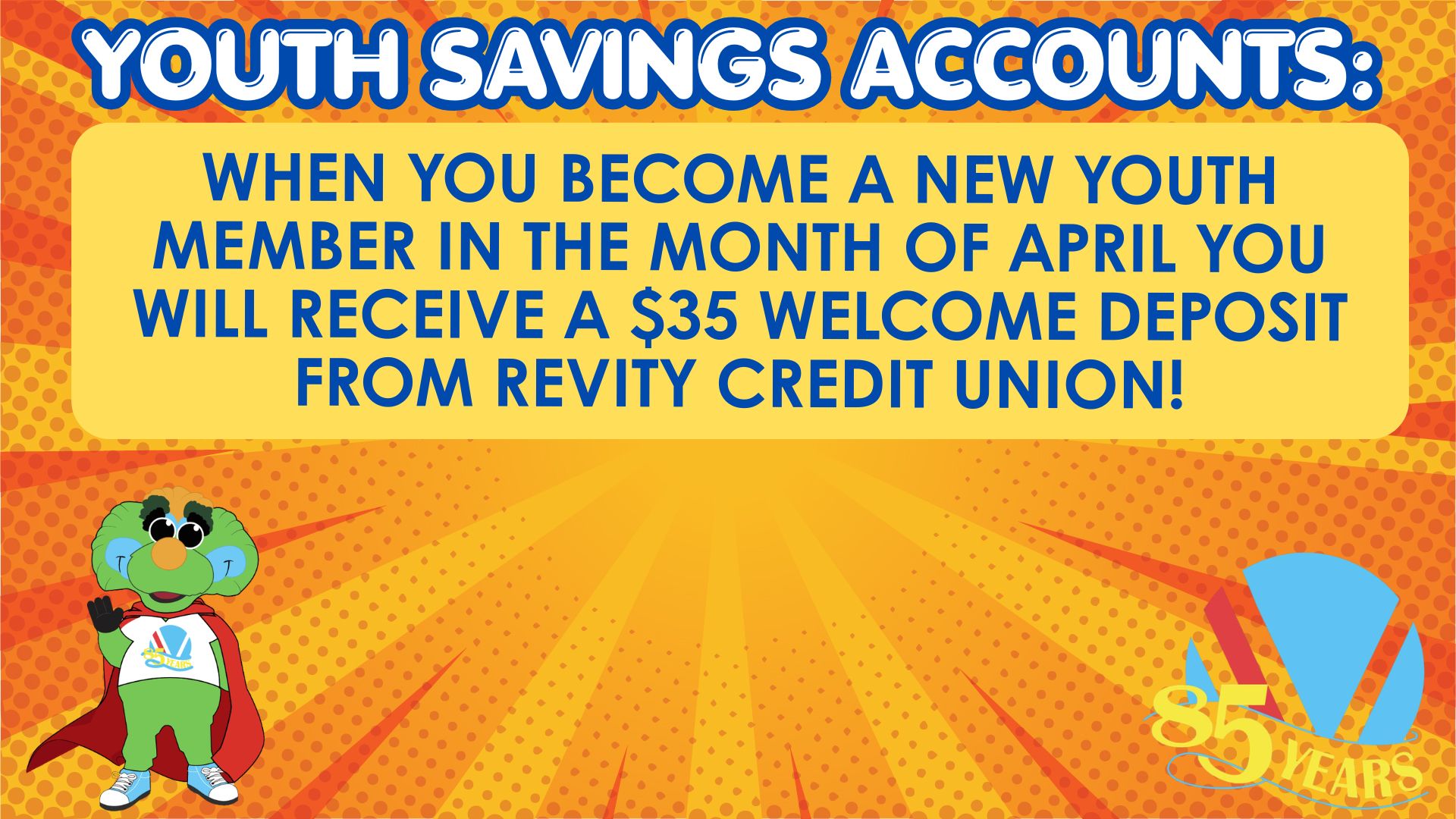 - $35 Welcome Deposit for all NEW Youth Accounts in April